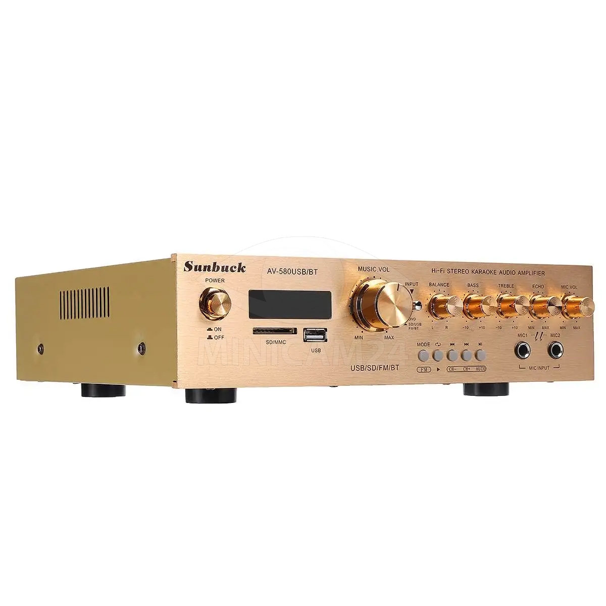 Пятиканальный Hi-Fi усилитель мощности Sunbuck AV-580USB/BT — идеальный выбор для создания мощной и качественной аудиосистемы. Он поддерживает объемный звук и оснащен модулем Bluetooth, FM-радио, а также возможностью воспроизведения аудиофайлов с SD-карт и USB-флешек. Встроенная функция караоке позволяет подключать два микрофона, каждый из которых имеет регулировку громкости и эффект реверберации для создания эффекта эха.